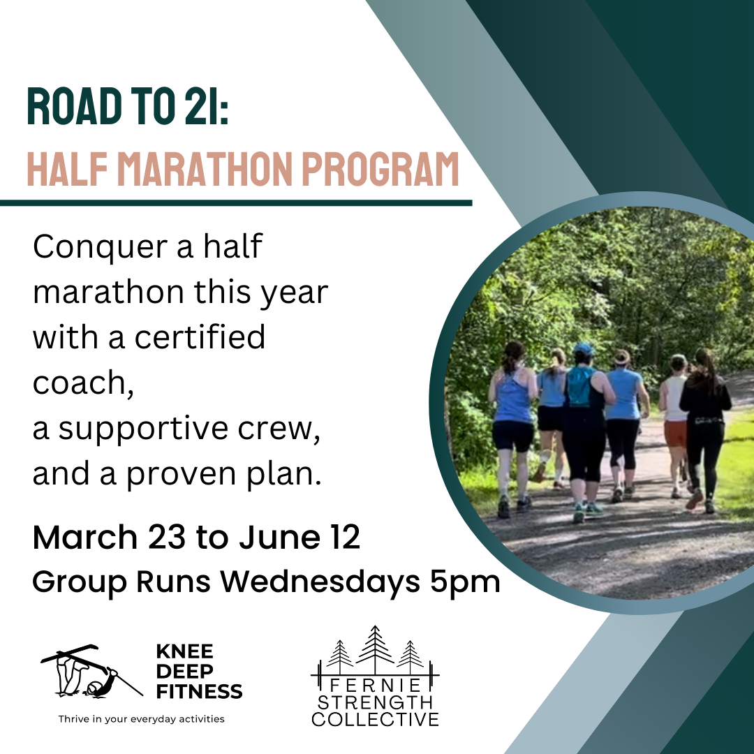 With a goal of taking on the Banff Half Marathon (optional, additional cost), This guided half marathon training program is designed to help you confidently and sustainably prepare for a half marathon in 2026.